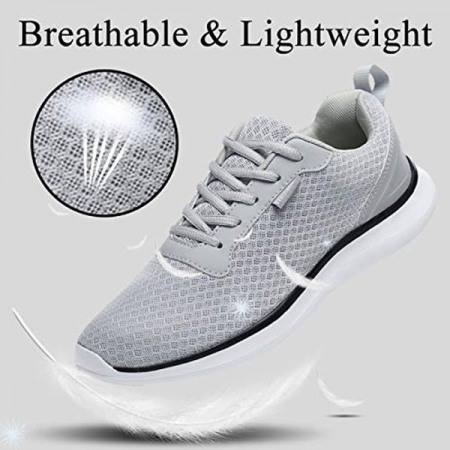 Men's Breathable Mesh Tennis Shoes Comfortable Gym Sneakers Lightweight Athletic Running Shoes Light Grey